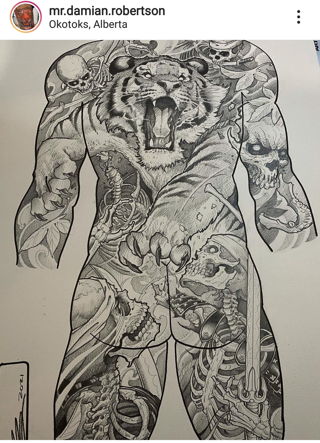 I'm pretty much open for anything but I was thinking a large tiger back. Water dragon leg sleeve to honor my mom. Then I thought maybe some matching hanya demon masks on the shins. Geisha girls on the forearms. We could do a bunch of lotus flowers everywhere for more background filler. Kiysuu did a reiki symbol that I have a few versions of.